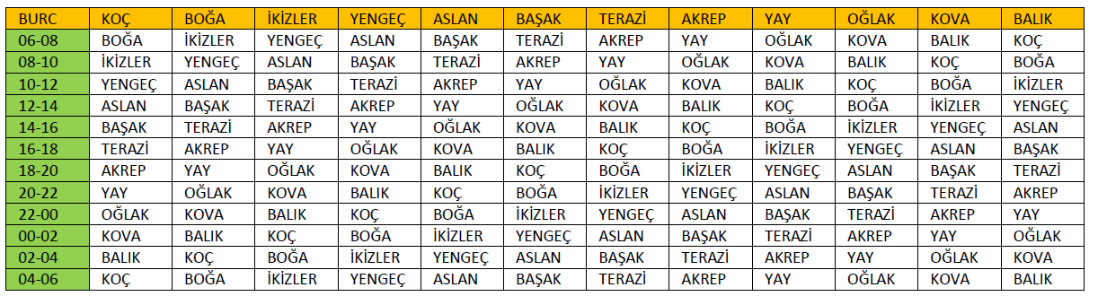 Yukselen Burc Hesaplama Tablosu Burc Delisi