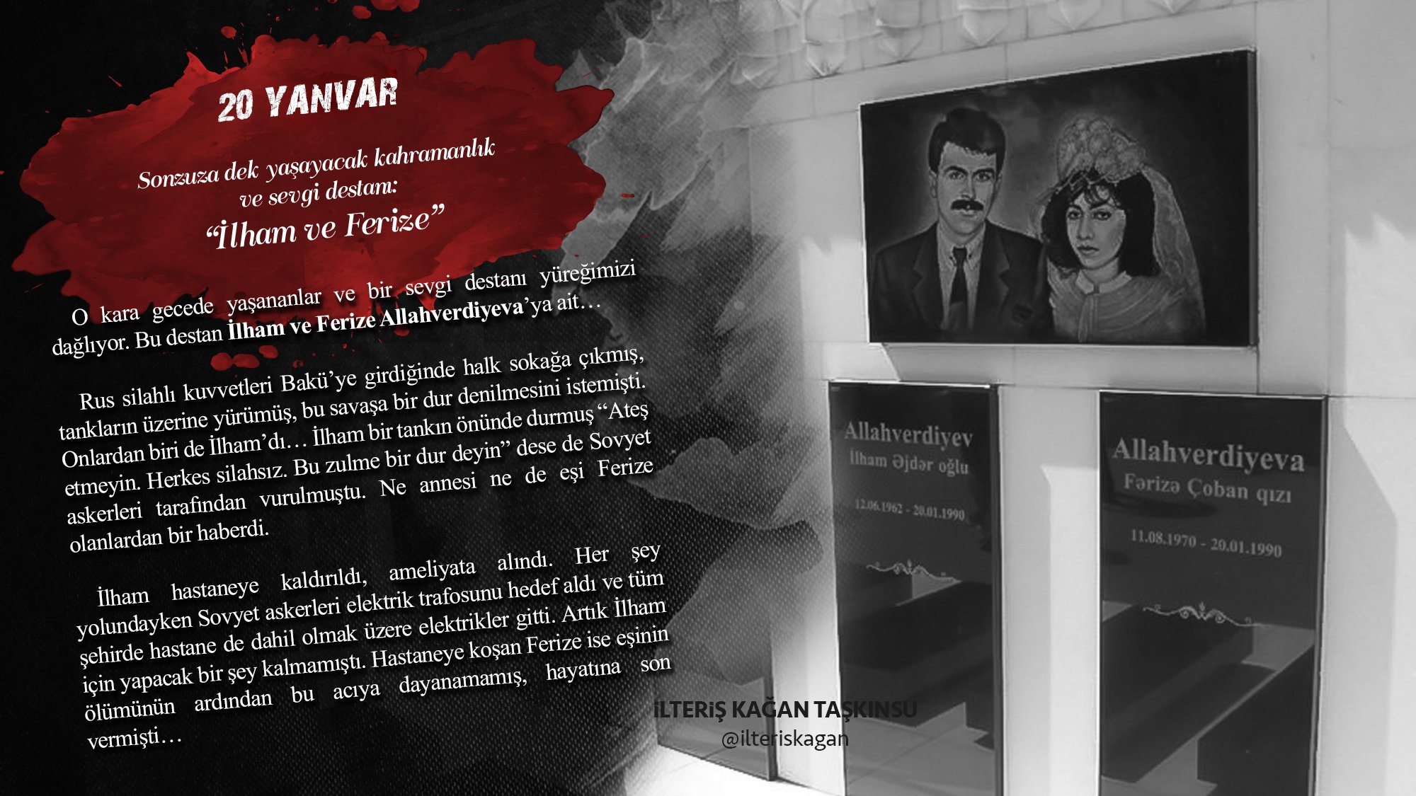 Ilham bakü meydanı ndaki protestolarda bir sovyet tankı tarafından hunharca ezilir. Ilham əjdər oğlu allahverdiyev 12 6 1962 19 1 1990 və fərizə çoban qızı allahverdiyeva 11 8 1970 20 1 1990 qara yanvarda şəhid olmuş azərbaycanlı ailə cütlüyü. 1962 ci il iyu nun 12 də də il ham.